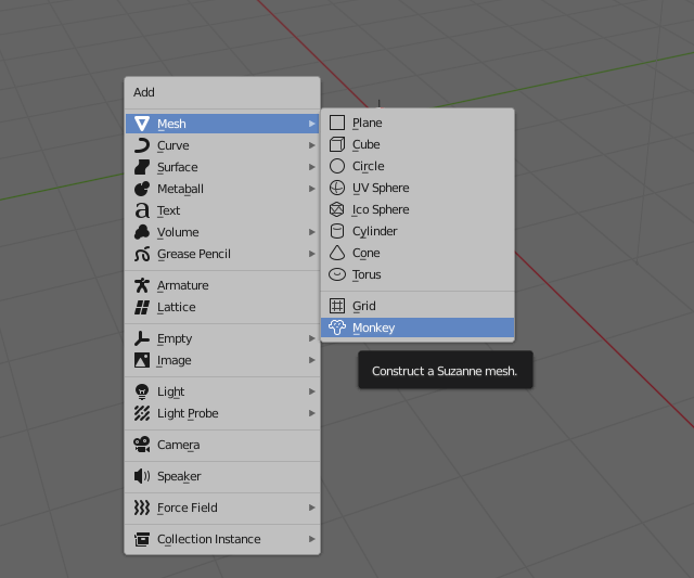 1. Press Shift-A on keyboard* > Mesh > Monkey
