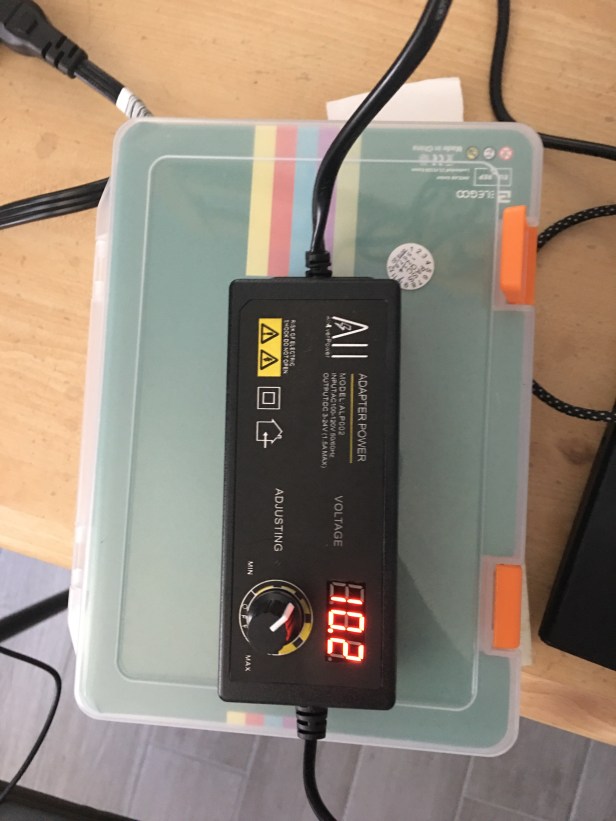 And below is a picture of the power supply I used. I have it set to ~10 V.