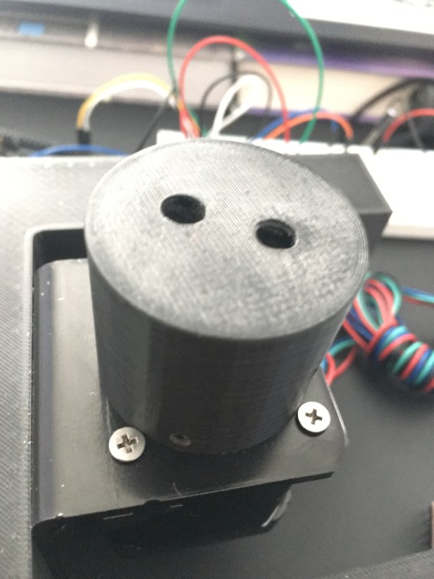 I think the loud noise might just be how the motor is. At first I thought it was due to our spindle (the black cylinder that is on the stepper motor shaft) rubbing against the screws on the stepper motor mount (see image below). But that wasn’t it.