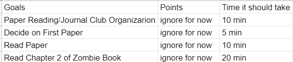 I thought it was pretty cool hearing, like, micro-updates from everyone in the group. We used the following guidelines to say our updates (thanks Dr. Shannin Moody!):
